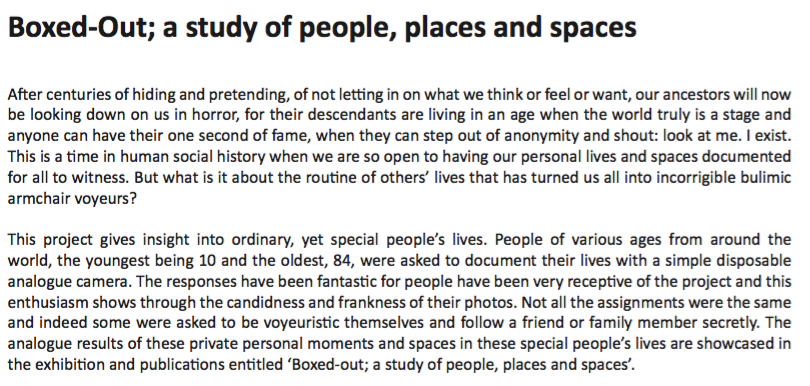 Boxed-Out; a study of People, places and spaces